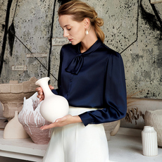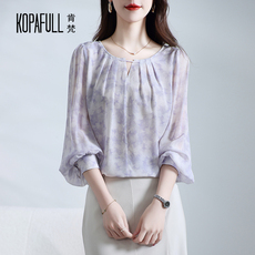 肯梵2025秋高端设计感优雅真丝衬衫女长袖通勤显瘦套头桑蚕丝上衣