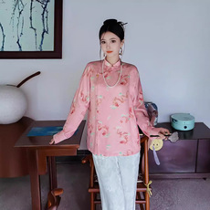 经典故事小众新中式衬衫女长袖秋季2025新款高端国风晕染印花衬衣