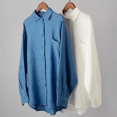 轻熟风 ~淡雅的高级感美 宽松舒适V领长袖亚麻衬衫女通勤气质上衣