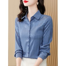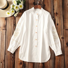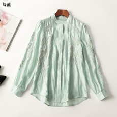 245151南油轻奢高定亲肤好穿天丝莱赛尔刺绣春夏立领长袖绣花衬衫