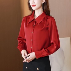 40多岁女装中年人秋装新款高端高富美长袖真丝丝绒上衣丝绒衬衫