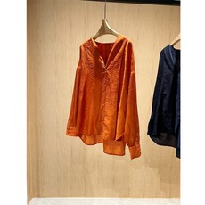 橘色光泽感上衣 24春季新款真丝混纺亚麻提花V领小众长袖衬衫女
