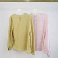 2025秋季新款时尚长袖衬衫百搭风黄/粉双色木耳边拼接蕾丝衬衣