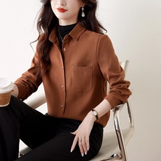 欧洲站2025早秋新款时尚翻领长袖纯色简约百搭衬衫女款欧货80003