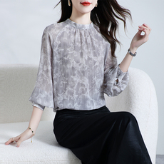 重磅高端提花立领真丝衬衫女长袖2025春秋新款气质休闲桑蚕丝上衣