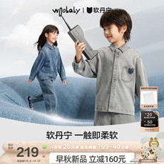 嘟嘟家男童衬衫软牛仔儿童外套秋装宝宝长袖上衣女童秋冬加绒衬衣