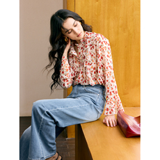 MOUSSY 秋季新品法式优雅甜美风春游碎花衬衫女028HSZ30-0511