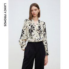 香沐兰2025新款时尚小碎花翻领衬衫女士春秋季薄款长袖开衫上衣