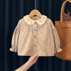女童上衣春秋季2025新款女孩洋气好看儿童碎花衬衫宝宝长袖娃娃衫