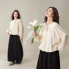 法式复古碎花圆领长袖衬衫女2025秋季新款设计感小众宽松显瘦上衣