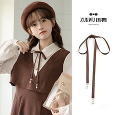 红色蝴蝶结衬衫领结女系带学院风毕业照珍珠胸针配饰银行职业领花
