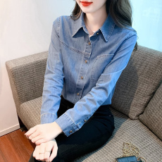 天丝牛仔翻领衬衫春秋新款显瘦女长袖衬衣休闲时尚宽松上衣181454