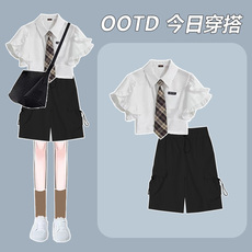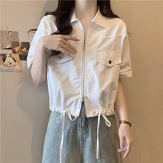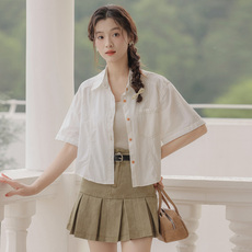 2025夏季白衬衫短袖牛仔衬衫外套薄款短款工装百搭开衫正肩小个子
