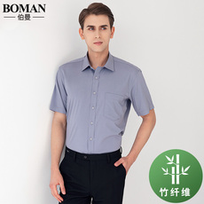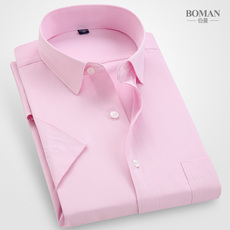 伯曼夏季薄款短袖衬衫男青年商务职业工装粉色白衬衣新郎结婚伴郎