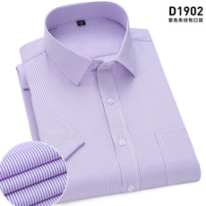 2020伯曼夏季男士短袖纯紫色白衬衫 商务韩版修身工装半袖衬衣