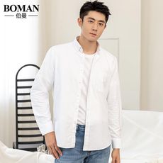 伯曼冬季男士加绒加厚长袖衬衫青年商务职业工装 纯色白保暖衬衣