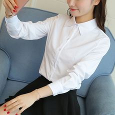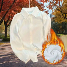 新款秋冬加绒白衬衫女JK长袖韩版修身工装加厚保暖衬衣学生职业装