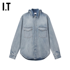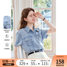 betu百图水洗磨白牛仔衬衫女短袖2025年夏季新款工装风牛仔衬衣