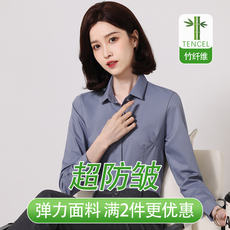竹纤维衬衫灰职业正装方领衬衣长袖白修身新款弹力工装工作服