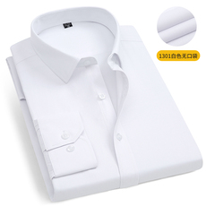 男装春季纯棉免烫长袖衬衫加大码白色职业工装男全棉商务正装衬衣