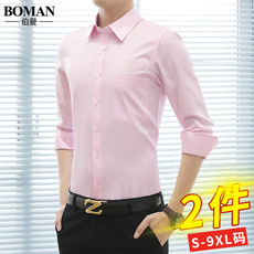 男士长袖粉色衬衫春秋季商务休闲大码工装结婚伴郎服短袖白衬衣寸