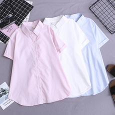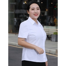加肥加大码纯棉纯色职业装白衬衫女短袖胖妹妹工装办公室面试上衣