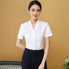白色衬衫V领短袖工作服新款莫代尔正装衬衣职业修身职业装工装