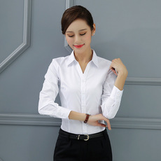 白色长袖衬衫职业正装工作服面试工装气质上衣春秋气质通勤衬衣女