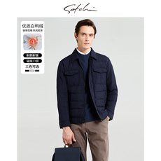 SATCHI沙驰男装男士工装羽绒服秋季新款商务白鸭绒轻薄衬衫外套男