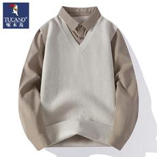 唐狮集团DESSO秋冬衬衫领假两件毛衣男保暖打底针织衫外套
