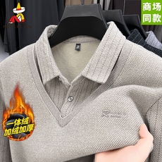 【一体绒】加绒加厚男士毛衣新款衬衫领假两件冬季保暖针织打底衫
