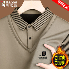 啄木鸟一体绒加绒加厚假两件毛衣男保暖针织衫衬衫领中老年爸爸装
