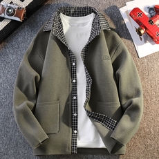 潮流拼接衬衫领假两件开衫男2025新款秋冬季毛衣外套男装针织外搭