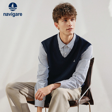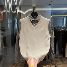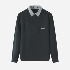 【H家】马甲式假两件!秋季新款简约休闲衬衫领针织衫男打底毛衣