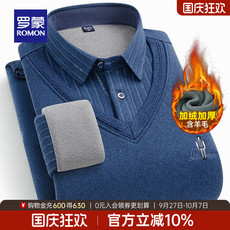 【含羊毛加绒加厚】罗蒙男士翻领针织衫2025冬季假两件衬衫领毛衣