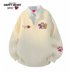 唐狮集团DESSO假两件拼接衬衫领毛衣男女春秋季潮流小众卫衣宽松