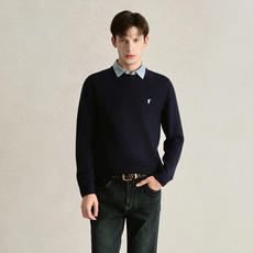 【可机洗】柏品海鸥领羊毛针织衫男2025秋新英伦风衬衫领套头毛衫