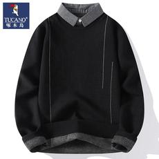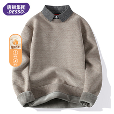唐狮集团DESSO衬衫领毛衣男秋冬加绒假两件针织衫男宽松学生上衣