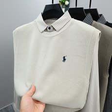 保罗假两件毛衣男衬衫领2025秋冬季新款针织衫男士打底衫休闲上衣