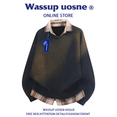 WASSUP UOSNE假两件针织衫男2025新款衬衫领打底衫秋冬季内搭毛衣