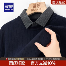 罗蒙假两件毛衣男衬衫领2025秋冬季新款商务休闲高档男针织衫上衣