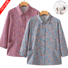 中老年人纯棉衬衫女奶奶夏装长袖上衣妈妈全棉衬衣秋季老太太衣服