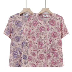 夏季纯棉上衣洋气短袖全棉碎花衬衣妈妈女士开衫中老年人衬衫夏装