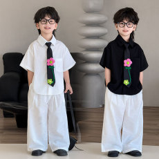 儿童韩系痞帅小男童夏装男宝宝生日男孩半袖衬衫套装酷帅衣服洋气