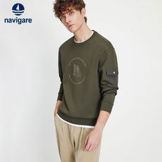 Navigare意大利小帆船休闲加绒长袖卫衣男秋冬新款圆领套头T恤衫