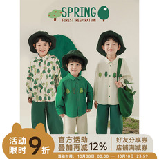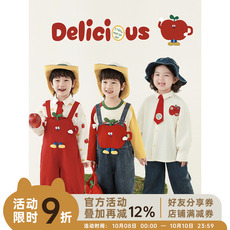 幼悠 男童春季新款长袖圆领T恤翻领衬衫背带裤苹果达人系列套装潮