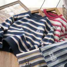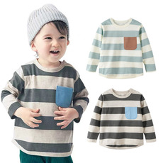 日系千趣男童长袖宝宝条纹套头春秋圆领休闲儿童T恤衫条纹上衣