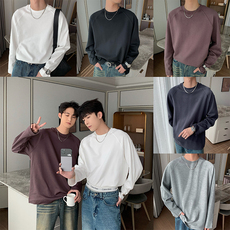 260克纯棉长袖t恤男宽松春秋季潮流圆领秋衣打底衫学生内搭体恤衫