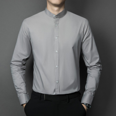 纯棉100支立领长袖白衬衫男中式立领休闲DP免烫圆领全棉正装衬衣