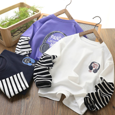 男童长袖T恤衫2025秋季新款中大童假两件上衣儿童圆领打底衫1862